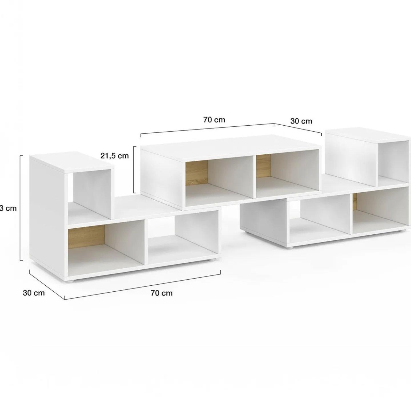 Meuble TV modulable 3 modules multifonction blanc et effet bois*IDMarket Online