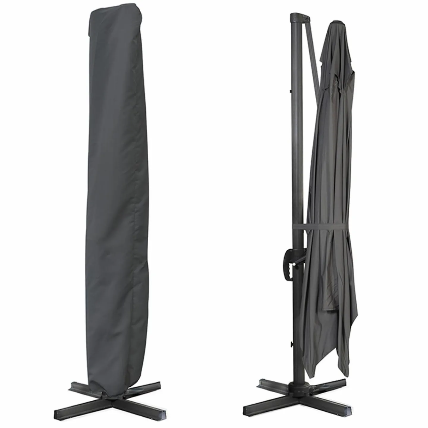 Parasol déporté inclinable rotatif 360 CALVI gris 3×4 M avec housse