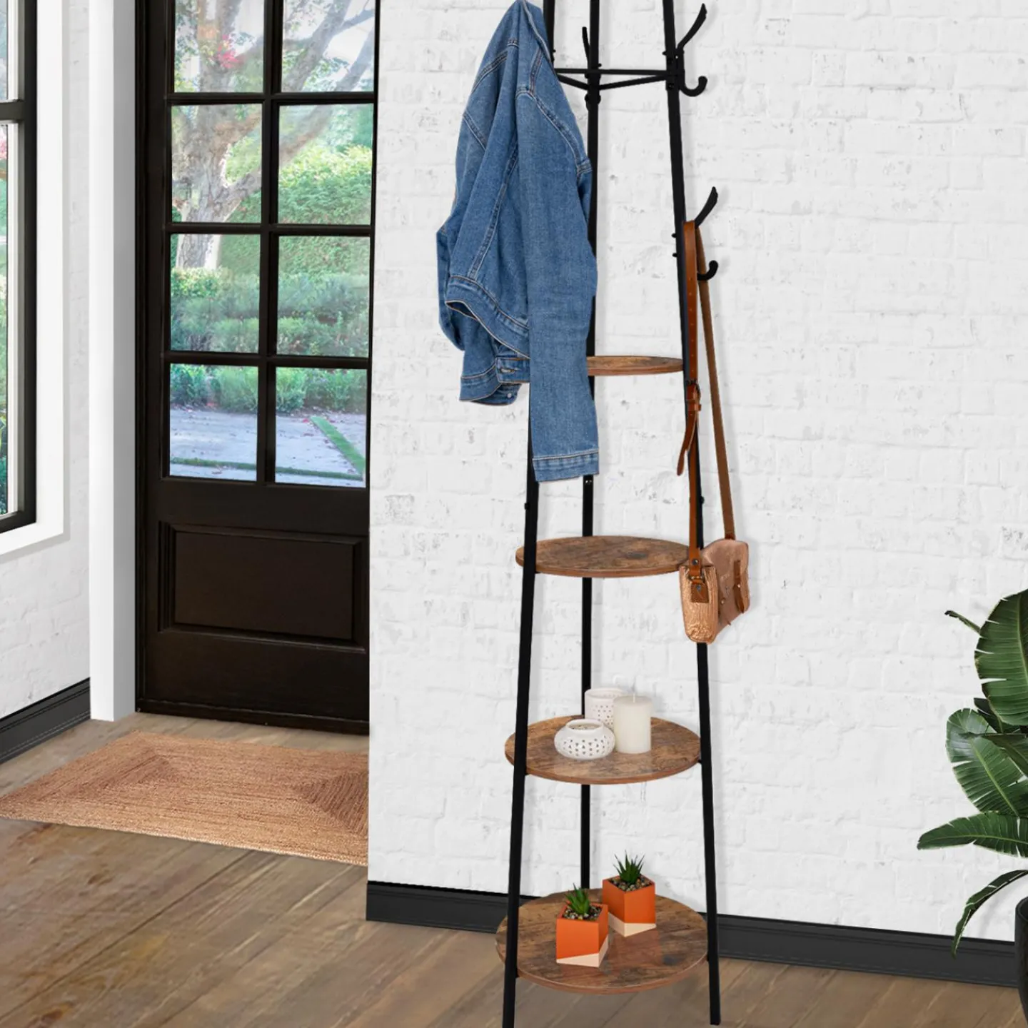 Porte-manteau industriel sur pied avec étagères*IDMarket Outlet