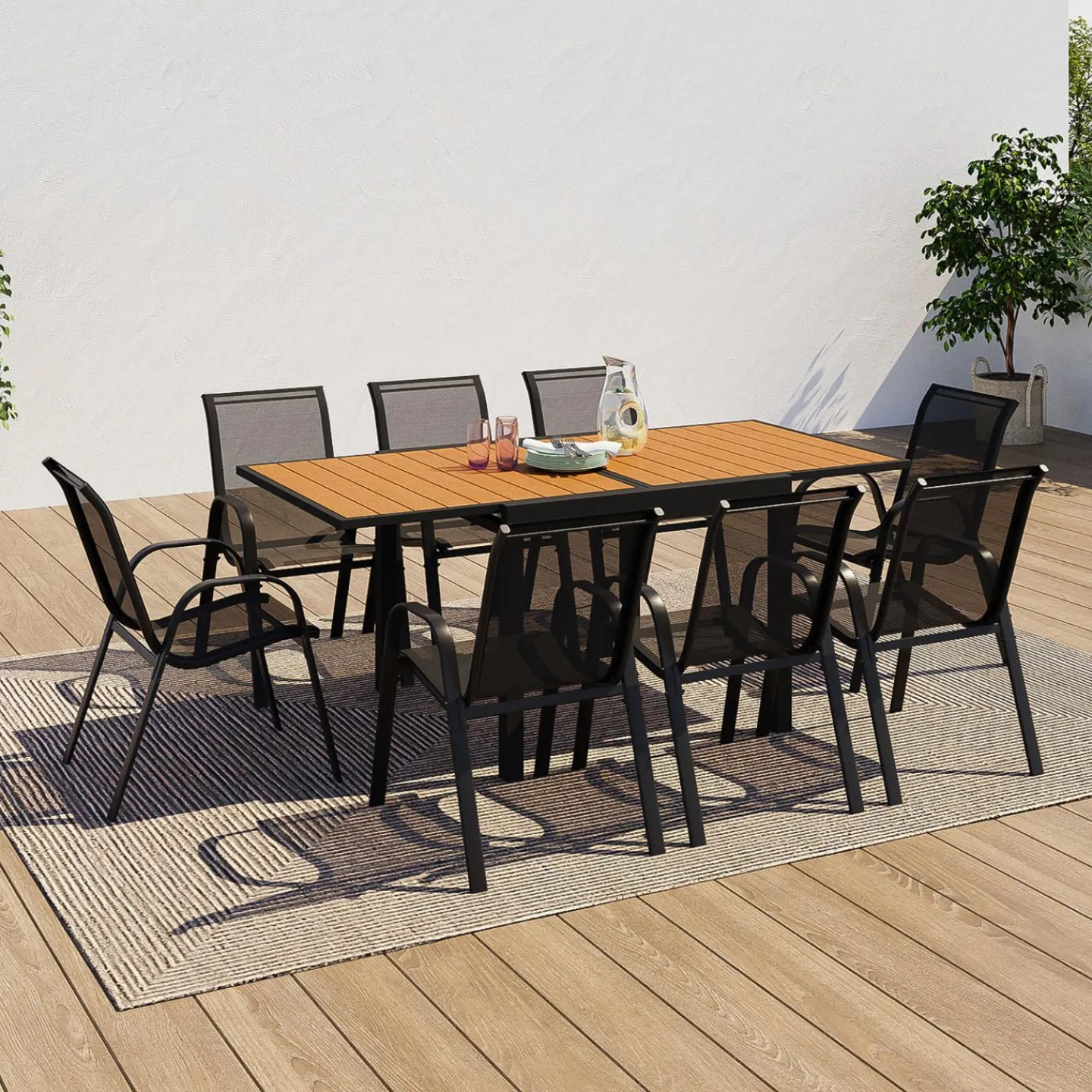 Salon de jardin POLY table extensible 90-180 CM et 8 chaises bois et noir