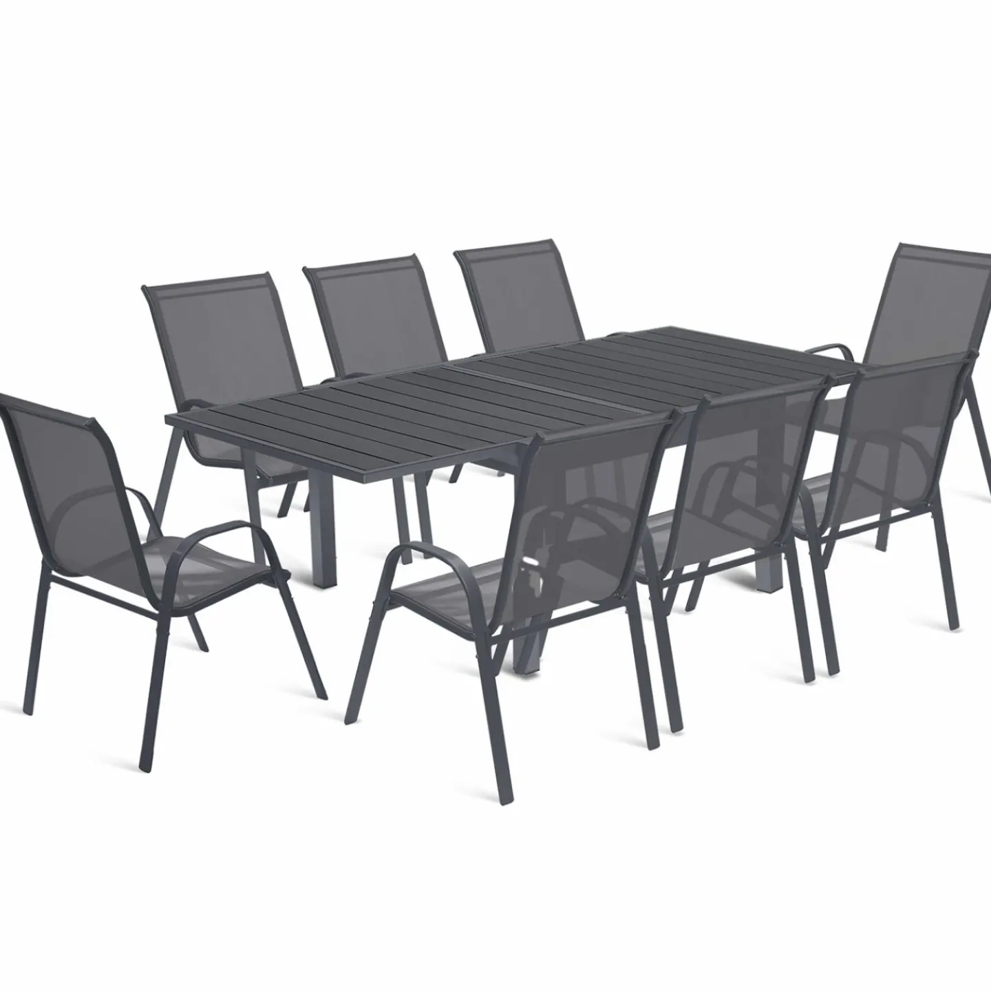 Salon de jardin POLY table extensible 90-180 CM et 8 chaises gris foncé