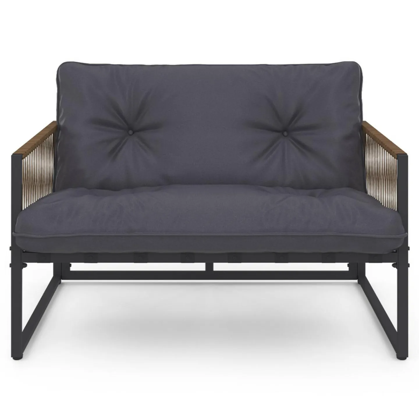 Salon de jardin bas RIO 6 places structure métal gris anthracite, cordage effet rotin avec coussins gris