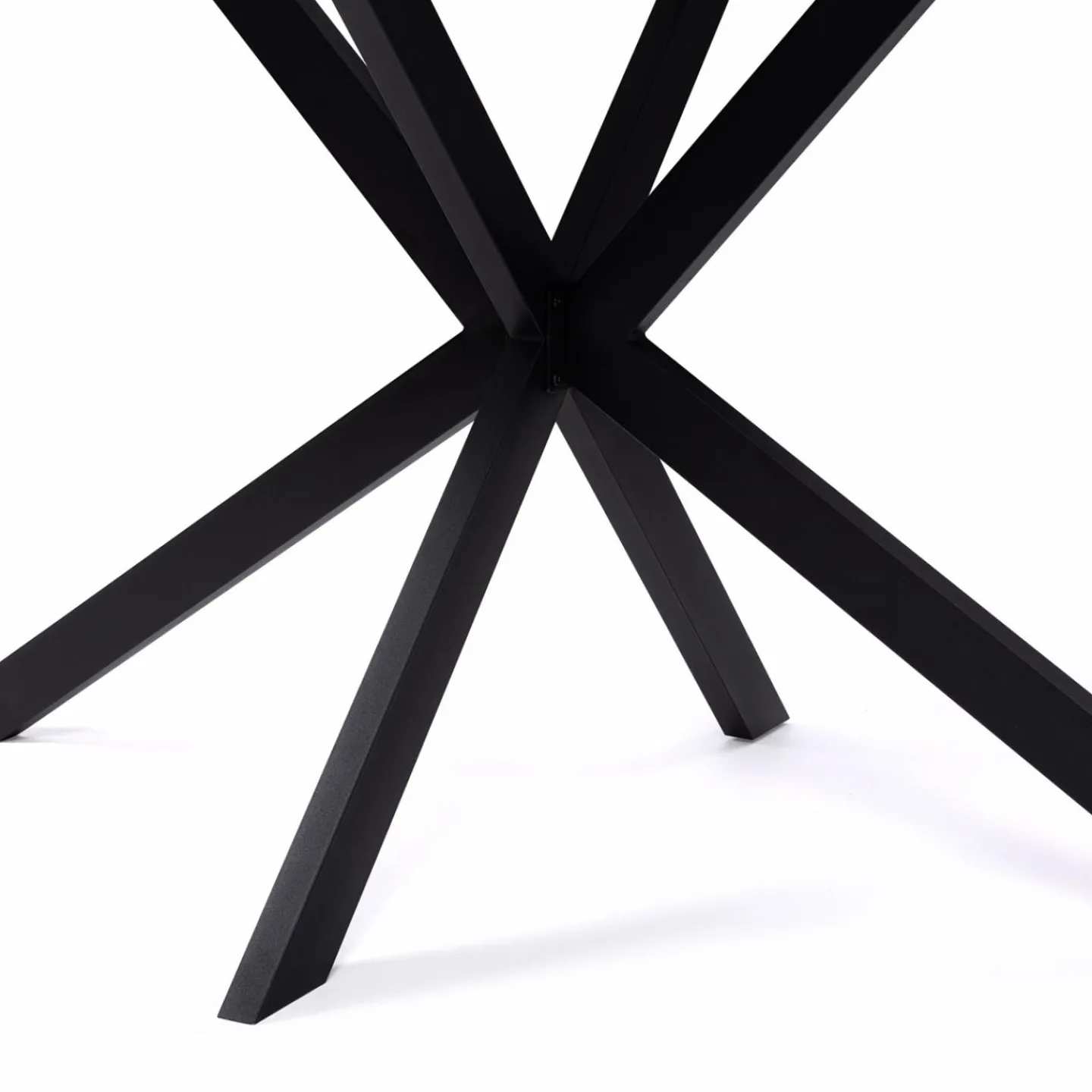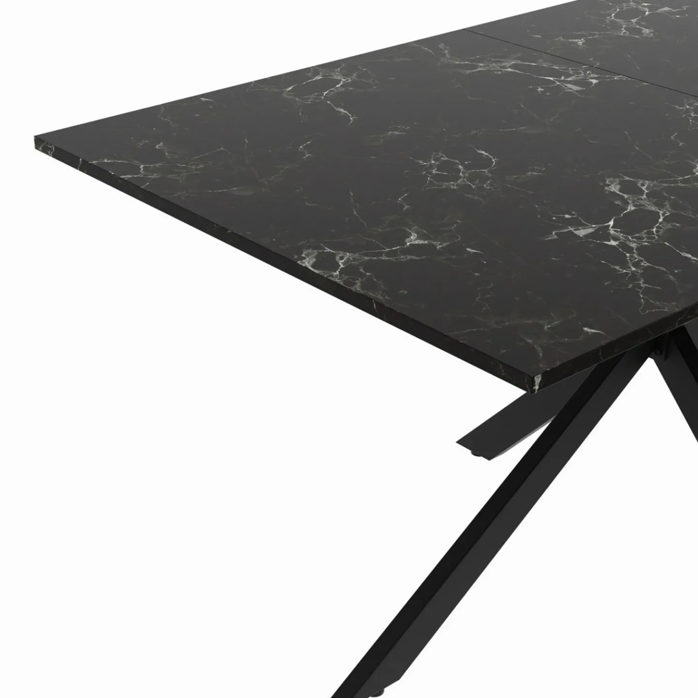 Table à manger rectangle ALIX 8 personnes pied araignée noir et plateau effet marbre noir ALASKA 160 cm