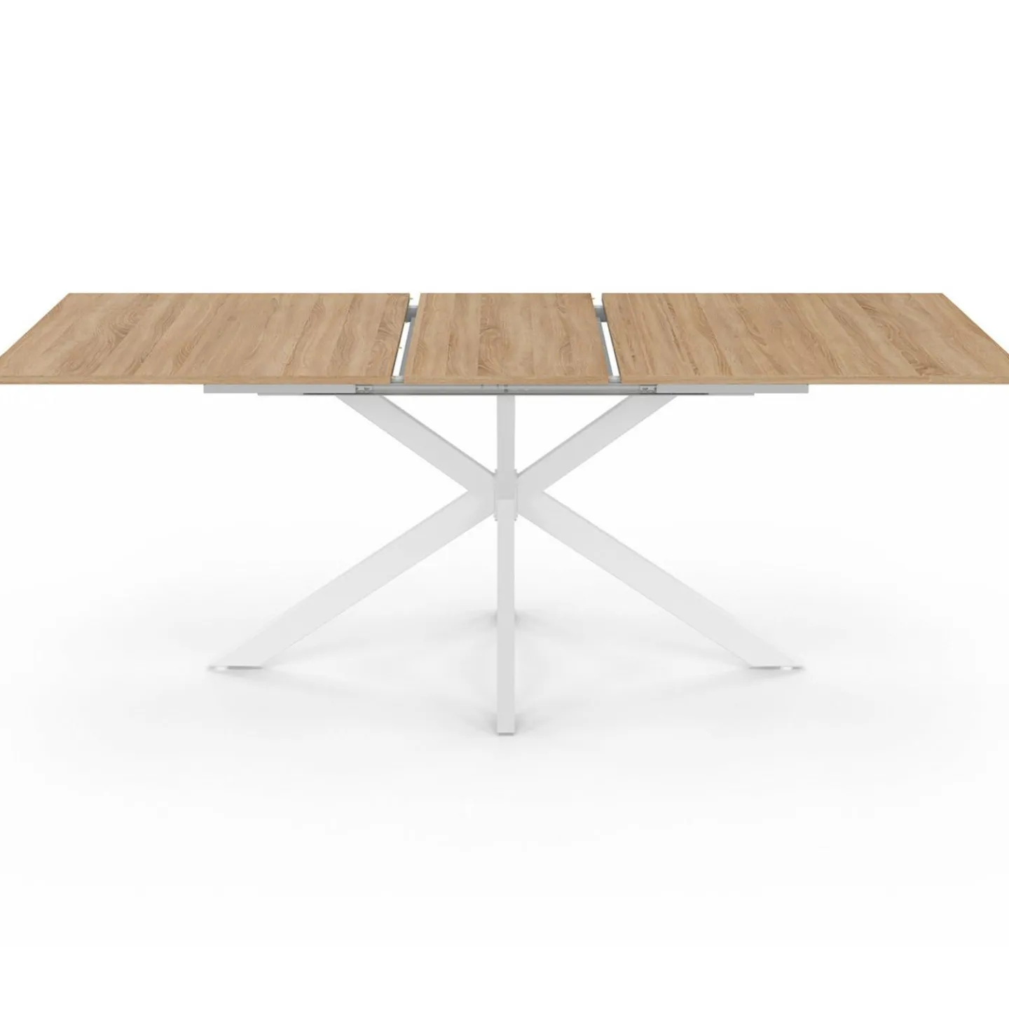 Associé au plateau bois, le pied araignée en métal blanc et cette table à manger 160-200 cm donne une note originale et moderne à votre pièce.