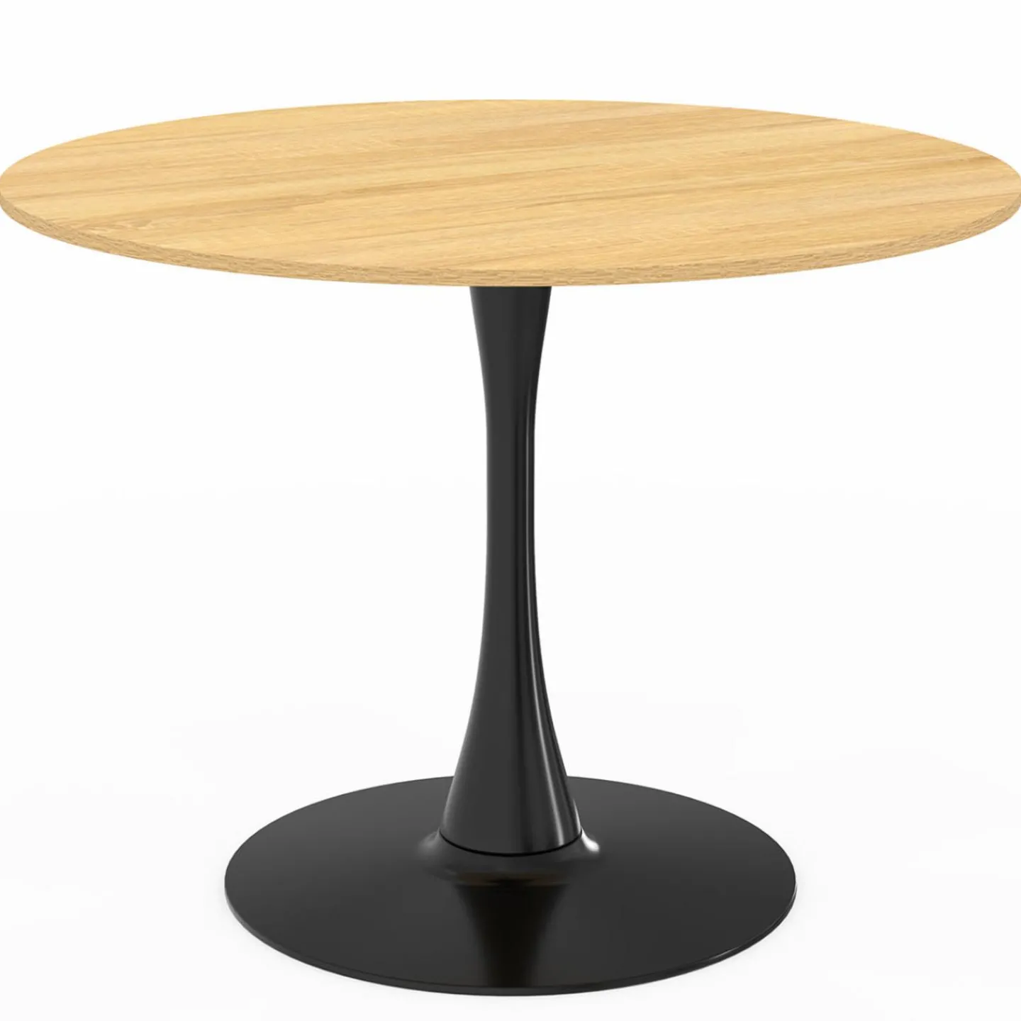 Table à manger ronde DALIA 4 personnes pieds tulipe bois et noir 100 cm