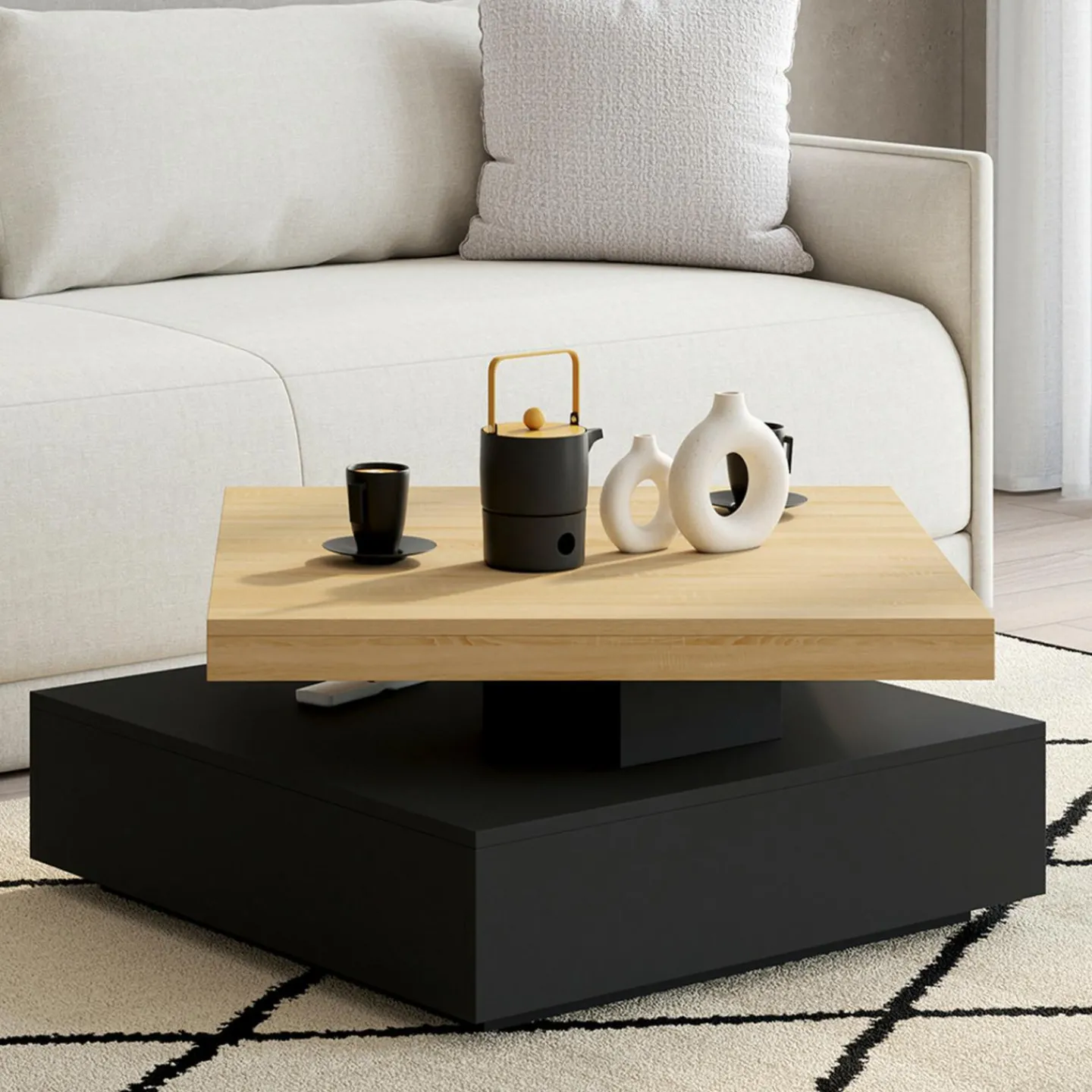 Table basse pivotante carrée bois et noire*IDMarket