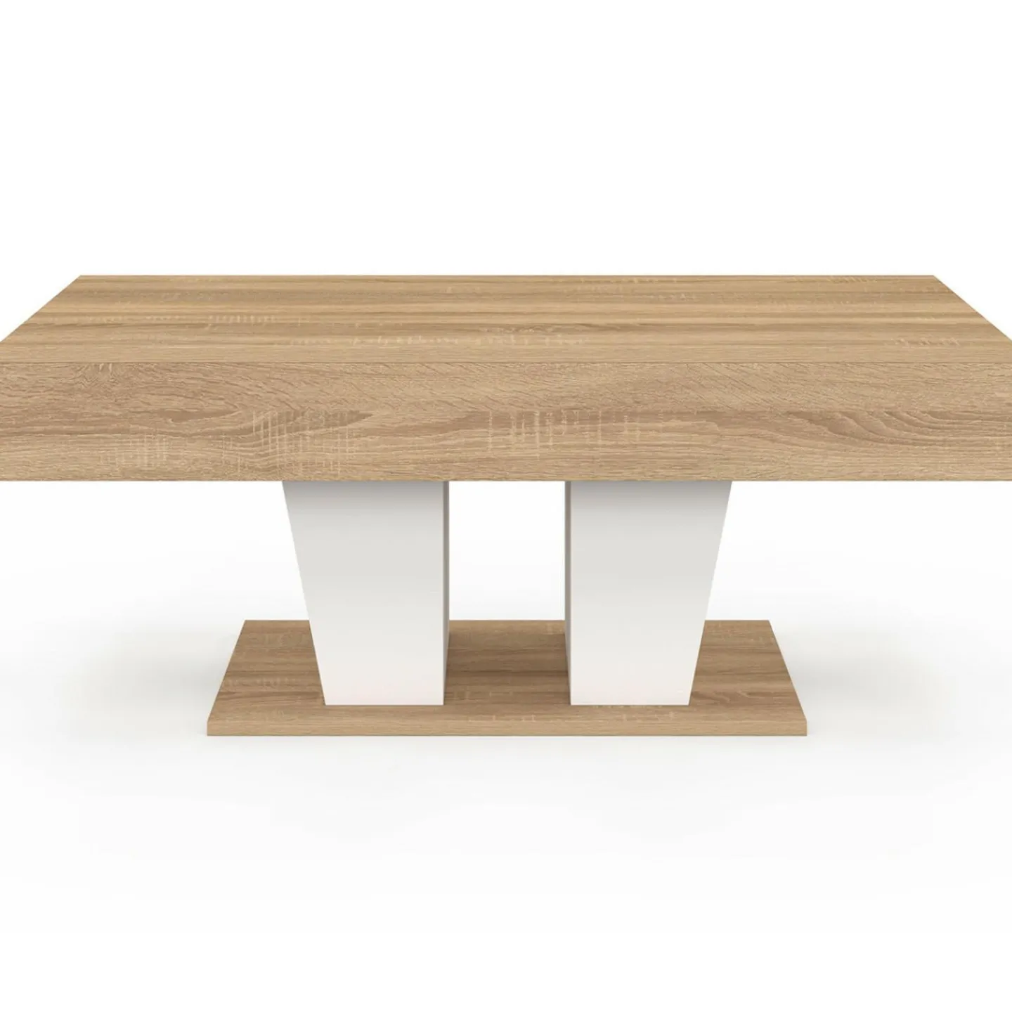 Une fois fermée, cette table basse bicolore bois et blanc apportera un style contemporain à votre intérieur. De plus, son design sobre et intemporel, confèrera une atmosphère chaleureuse et conviviale à votre espace salon, de quoi passer des soirées cocooning !