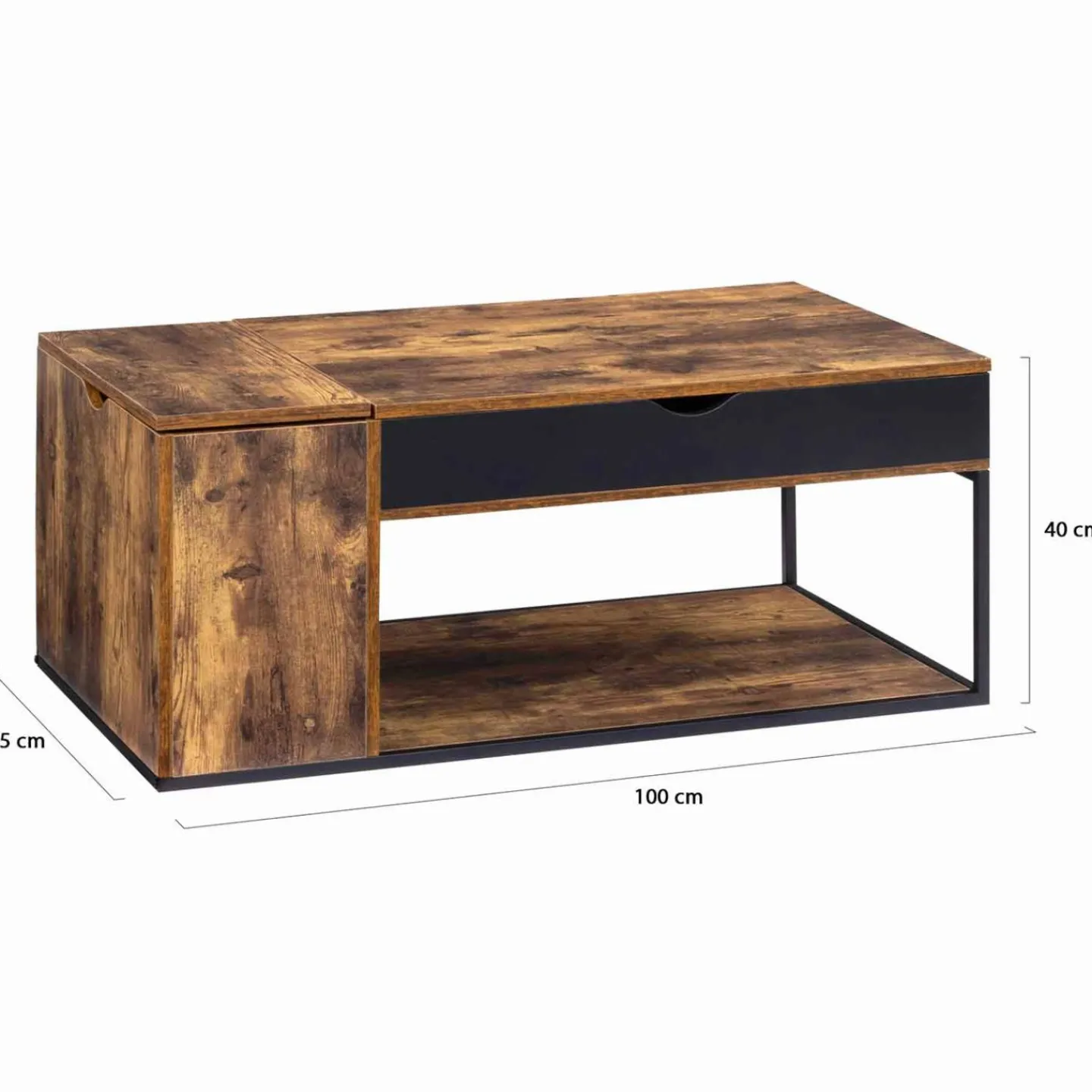 Table basse plateau relevable style industriel effet bois vieilli*IDMarket Sale