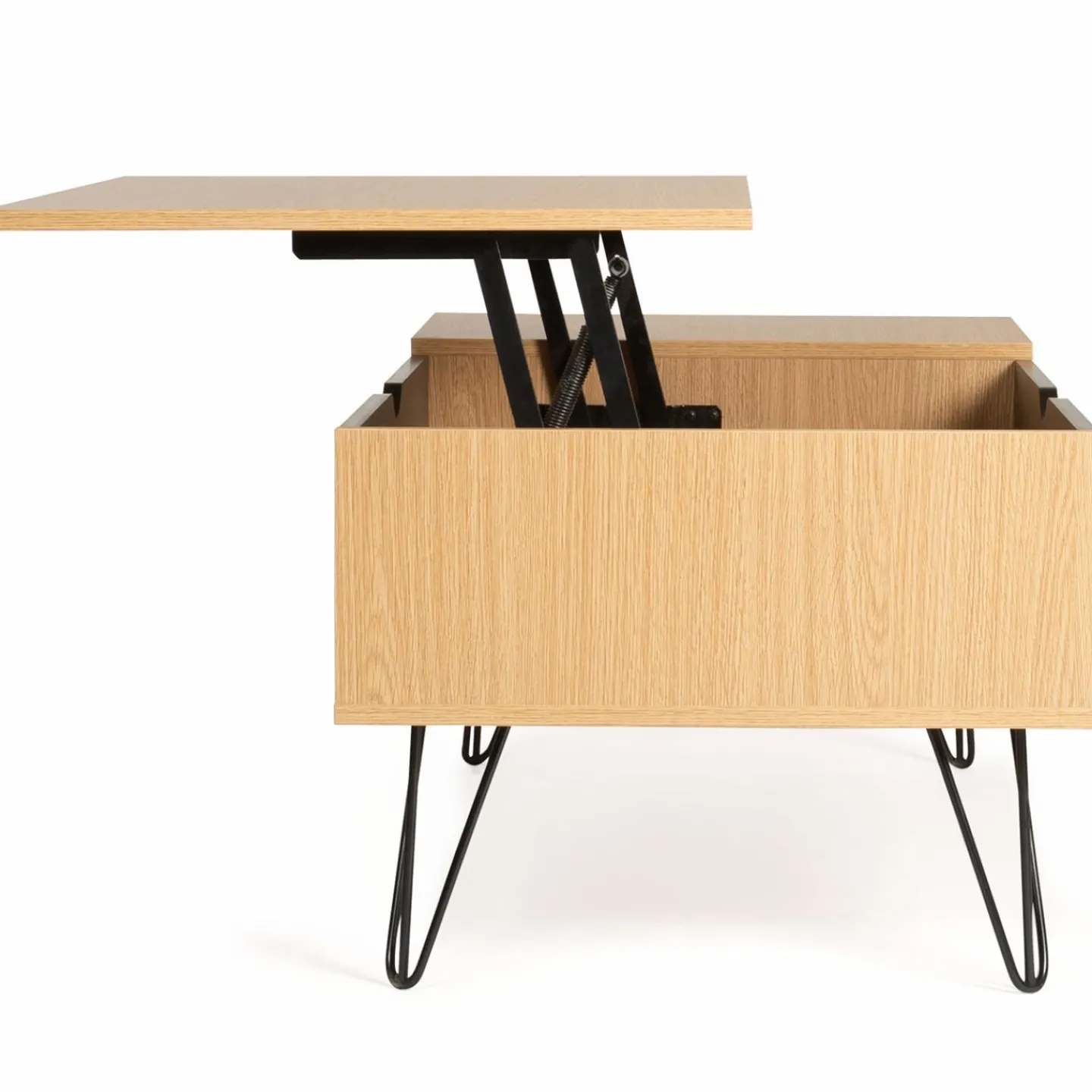 Table basse plateau relevable rectangulaire NOEMI bois pied épingle
